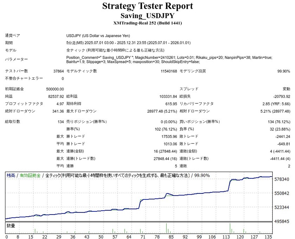 Saving_USDJPYのリリース後のバックテスト結果(≒フォワード結果)は以下のようになりました。