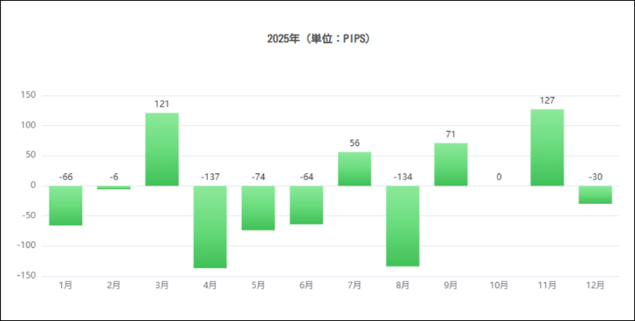 月次分析を見ると、2025年はトータルでマイナスです。