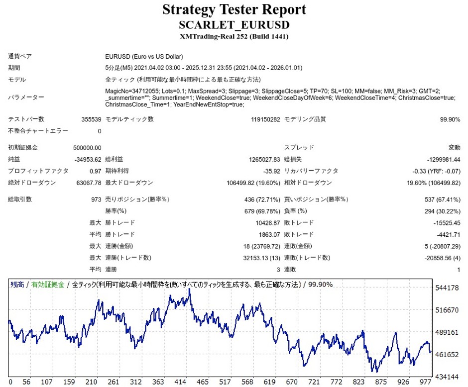 SCARLET EURUSD+のEA検証結果