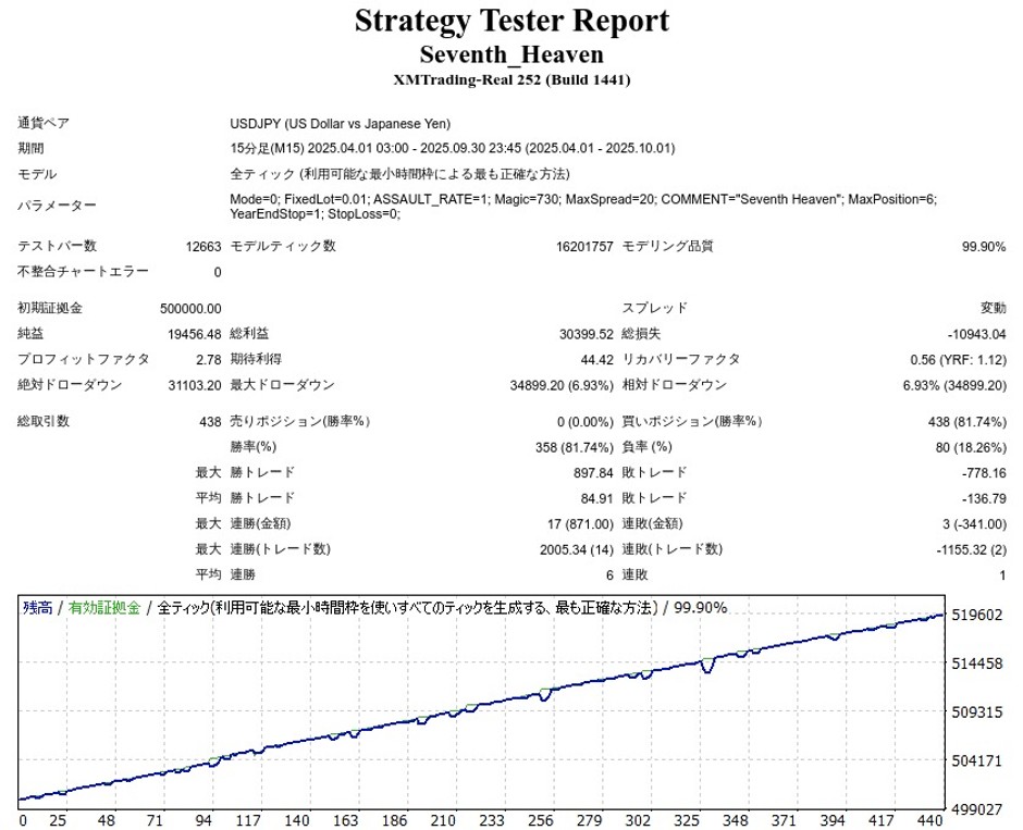 セブンス・ヘブンのリリース後のバックテスト結果(≒フォワード結果)は以下のようになりました。