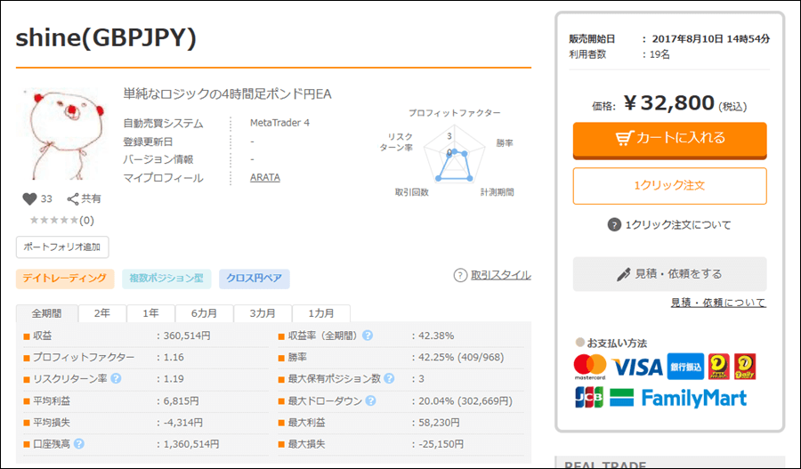 ARATAさんはshine(GBPJPY)以外にもEAを多くリリースしています。