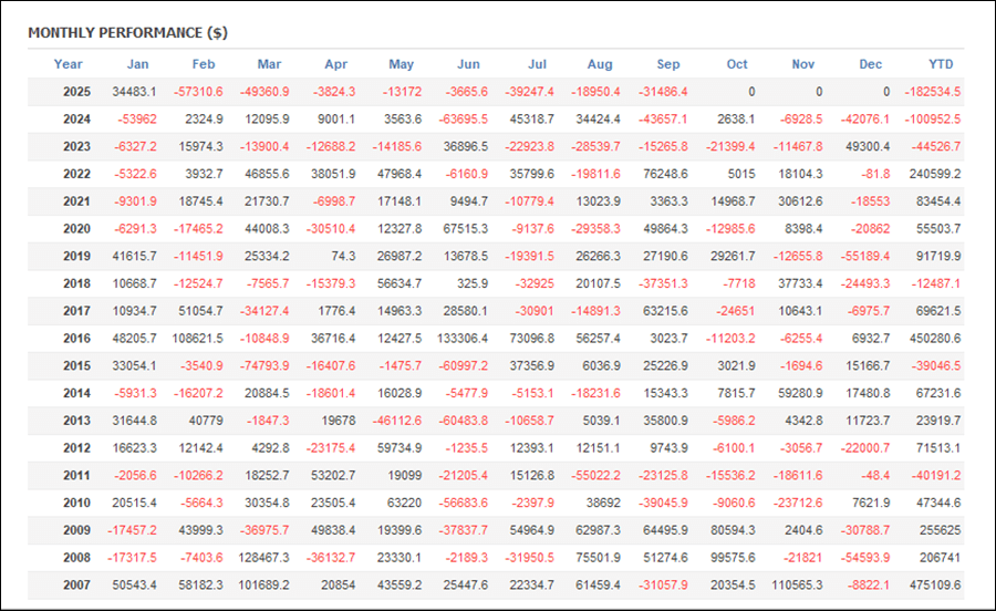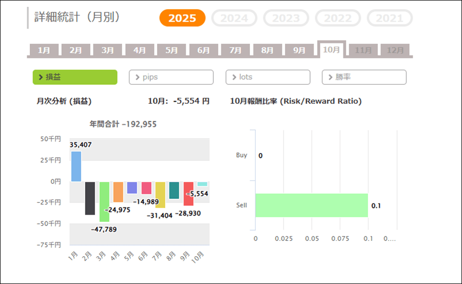 月次分析を見ると、2025年は今のところトータルでマイナスです。