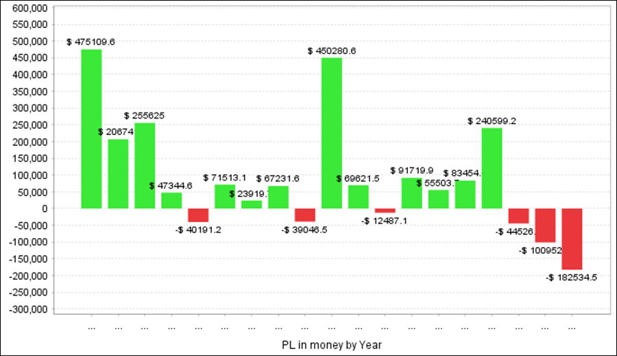 マイナスの年もありますが、勝つ年の利益率が高くなっています。