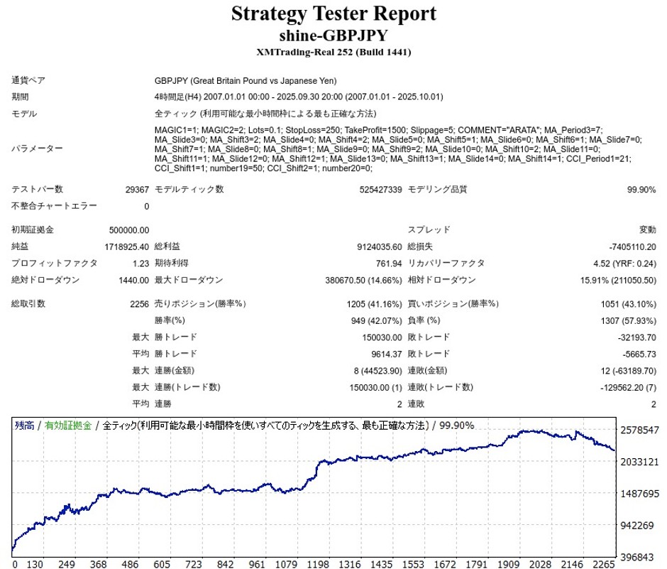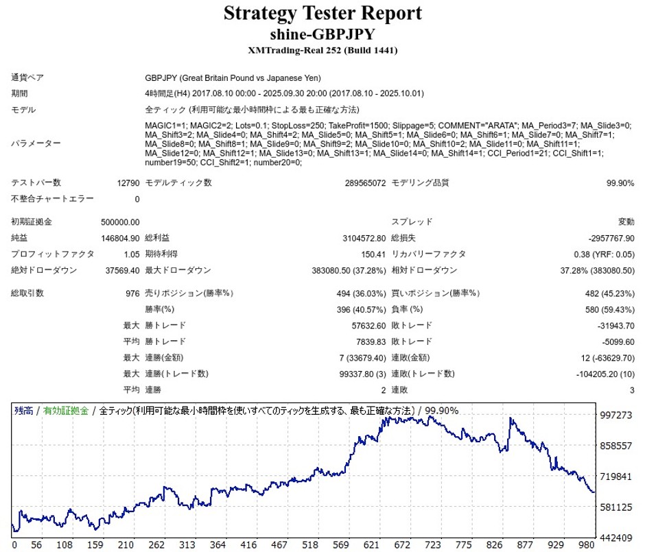 shine(GBPJPY)のリリース後のバックテスト結果(≒フォワード結果)は以下のようになりました。