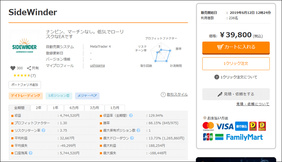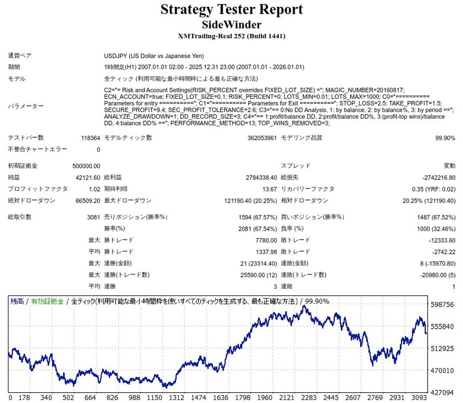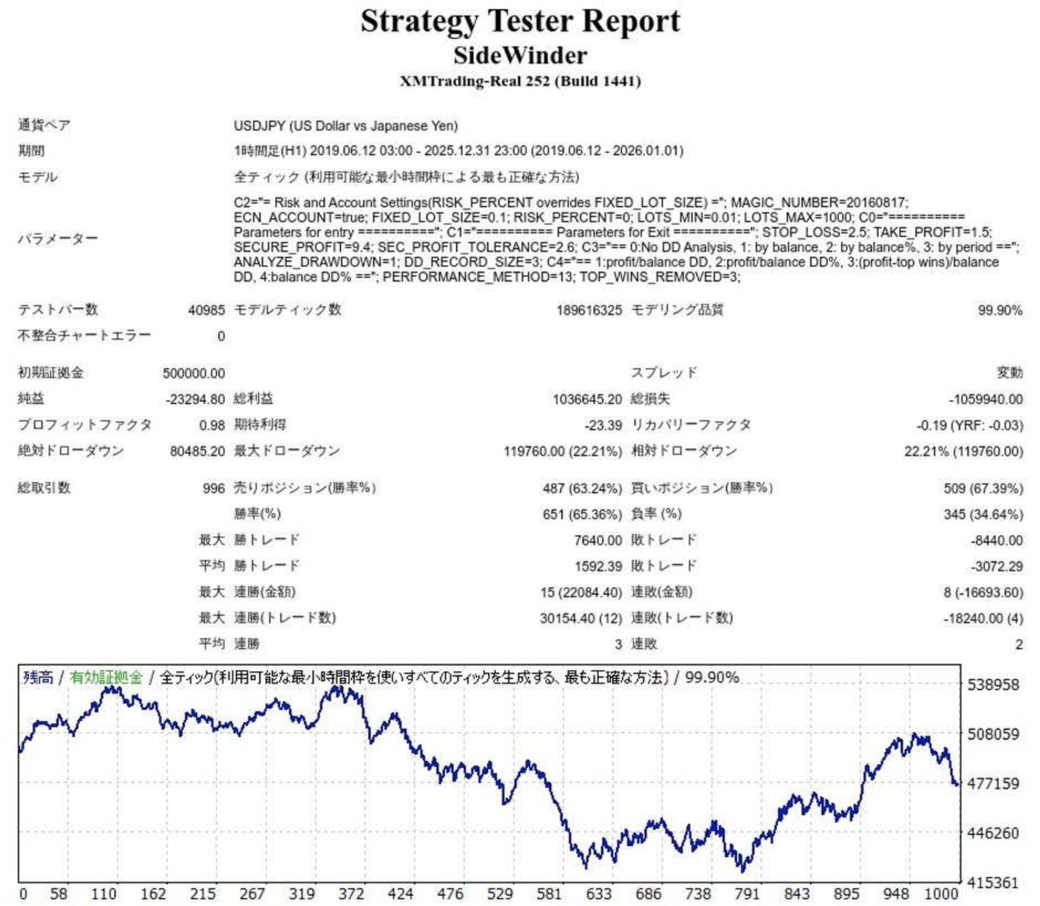 SideWinderはUSDJPY専用のEAですが、成績はどうなのでしょうか。