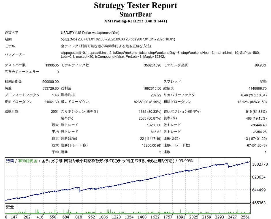 スマートベアは複数ポジション型のスキャルピング、デイトレードEAですが、成績はどうなのでしょうか。