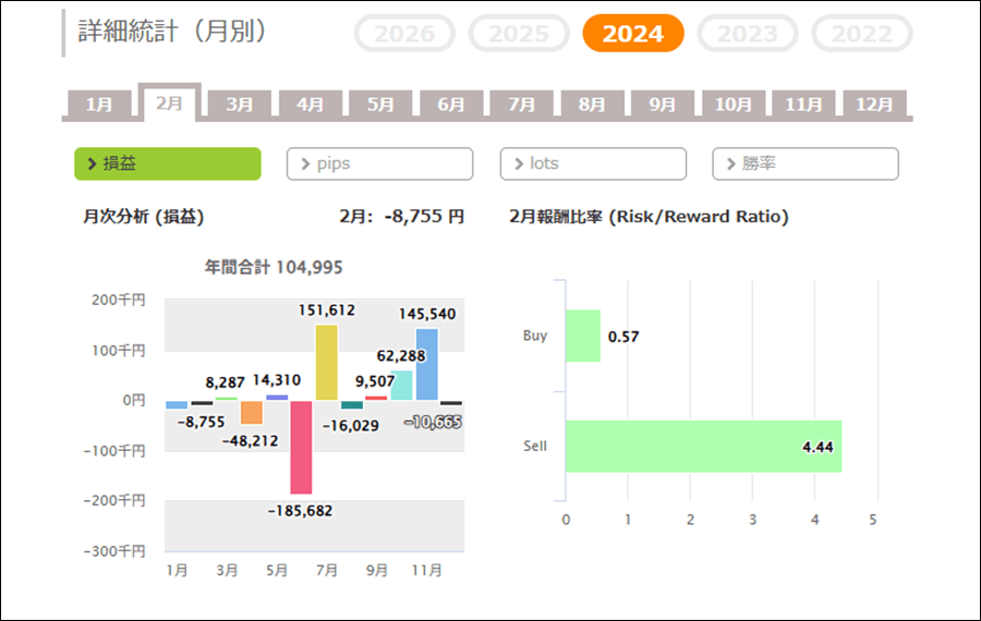 | 平均損失 | -20,740円 | 最大損失 | -158,925円 |