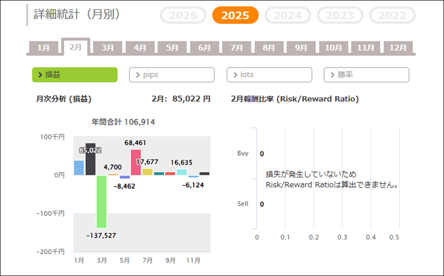 月次分析を見ると、2025年、2024年はトータルでプラスです。