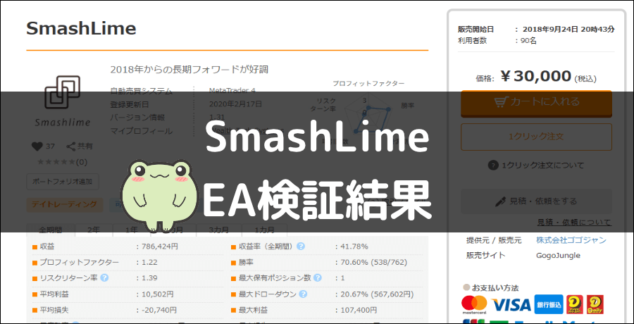 GogoJungleのSmashLimeのバックテストをしてきました。