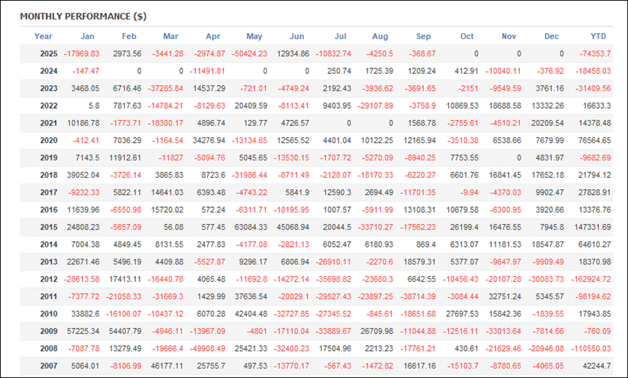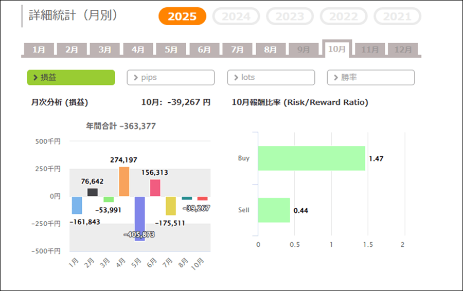 月次分析を見ると、ロットが大きい分、勝っている月と負けている月の差が大きいです。