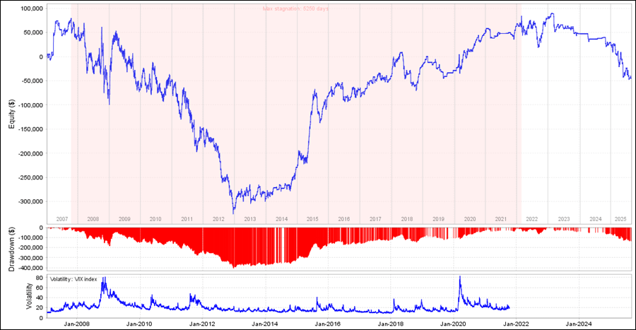 最大ドローダウン 409,926円(70.75%) リスクリターン率 -0.11