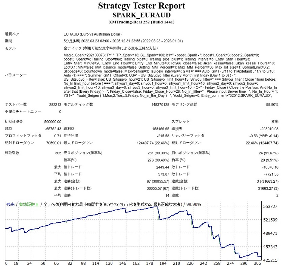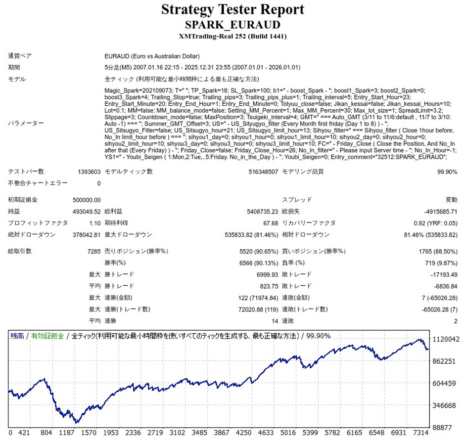 SPARK_EURAUDのリリース後のバックテスト結果(≒フォワード結果)は以下のようになりました。