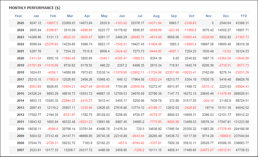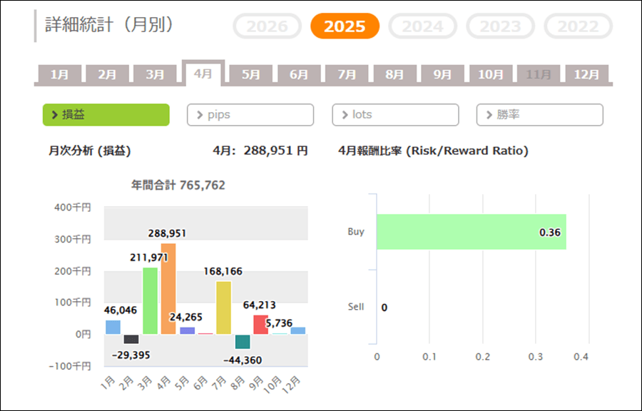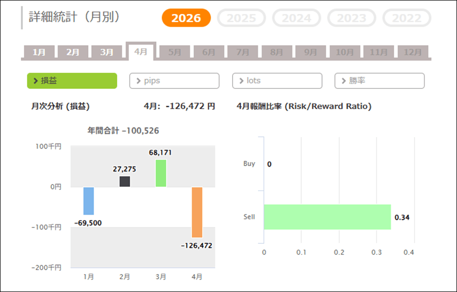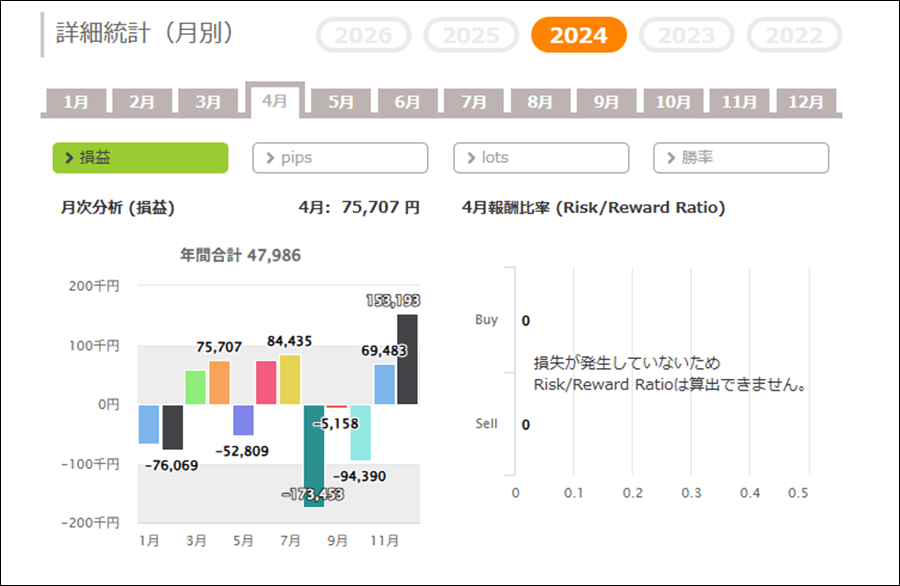 月次分析を見ると、2026年は今のところトータルでマイナス。2025年、2024年はトータルでプラスです。