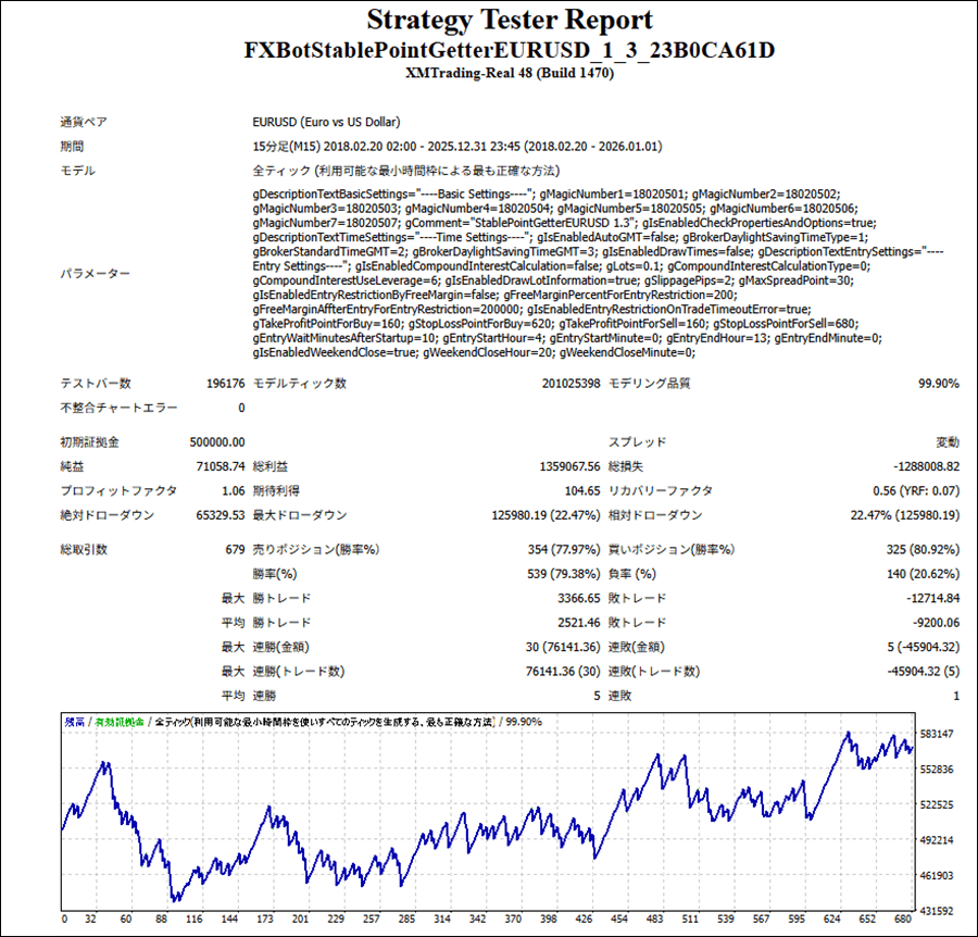 | 初期証拠金 | 500,000円 | 勝率 | 79.38% |