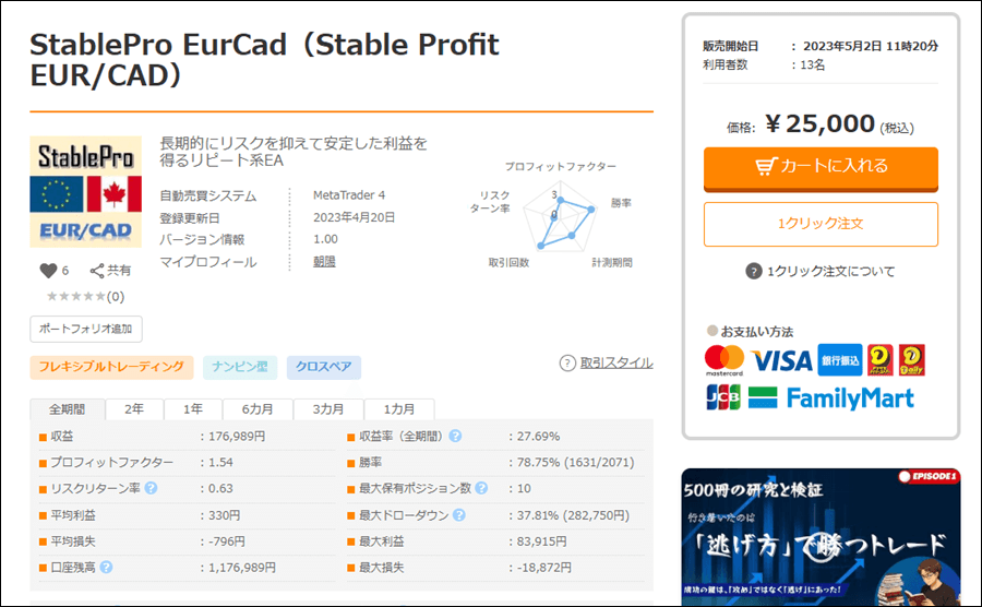 では、StablePro EurCad(Stable Profit EUR/CAD)を詳しく見て行きましょう。