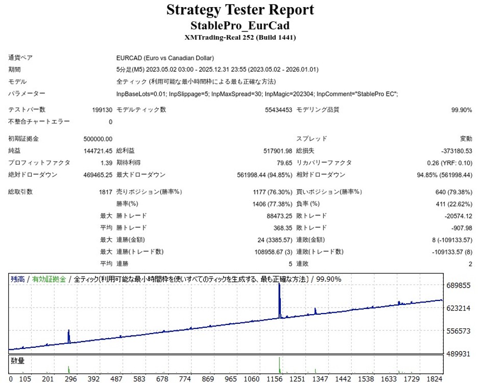 StablePro EurCad(Stable Profit EUR/CAD)はEURCAD専用のリピート系EAですが、成績はどうなのでしょうか。