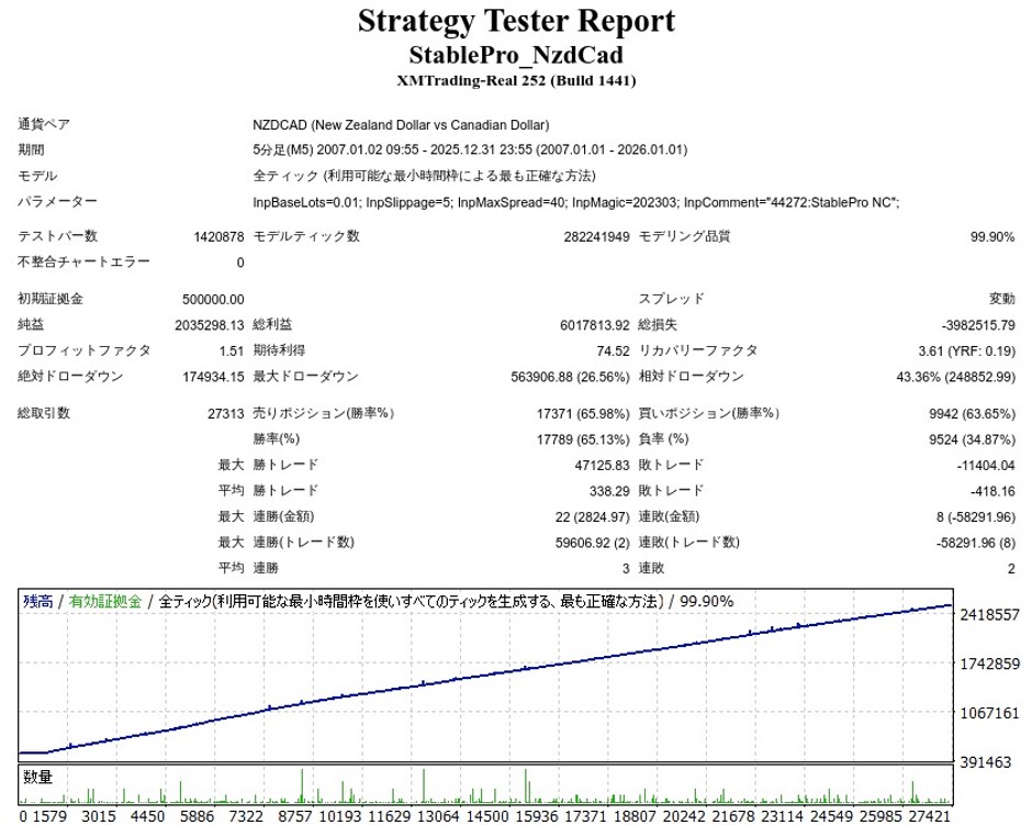 GogoJungleのStablePro NzdCad(Stable Profit NZD/CAD)のバックテストをしてきました。