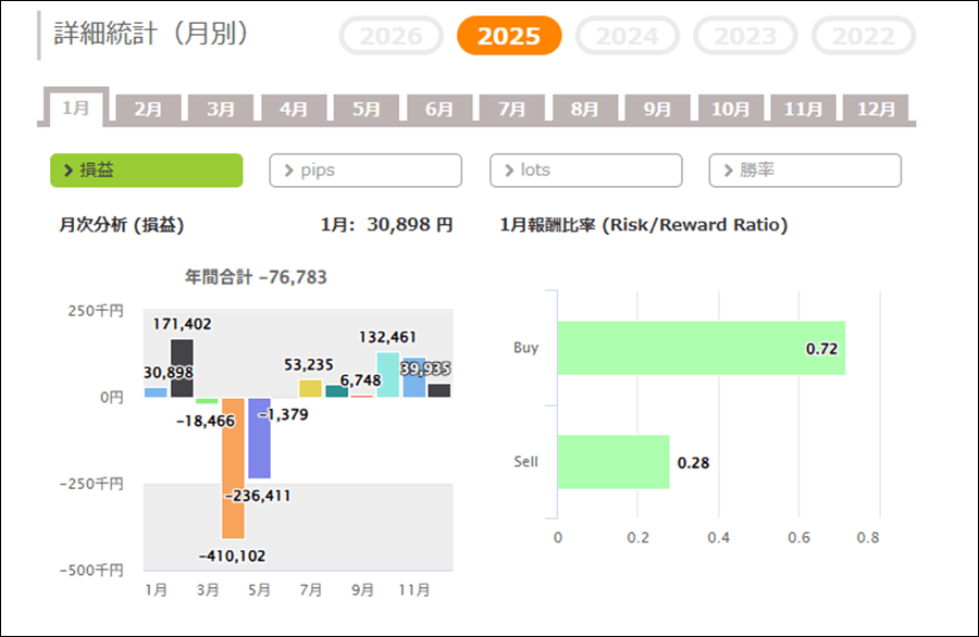 | 平均損失 | -24,735円 | 最大損失 | -77,000円 |