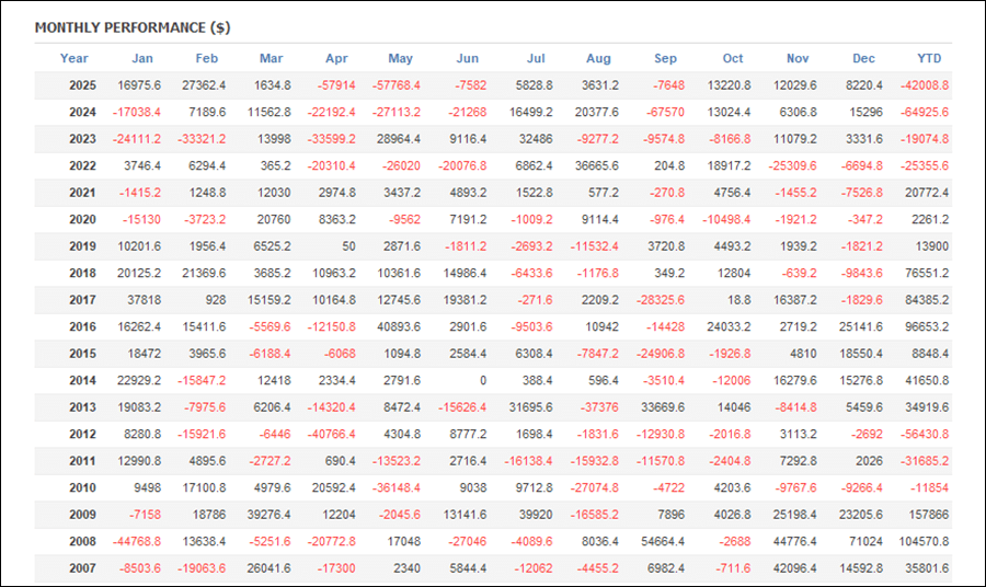 2023年はマイナスの月が多く、年トータルではマイナスになっています。