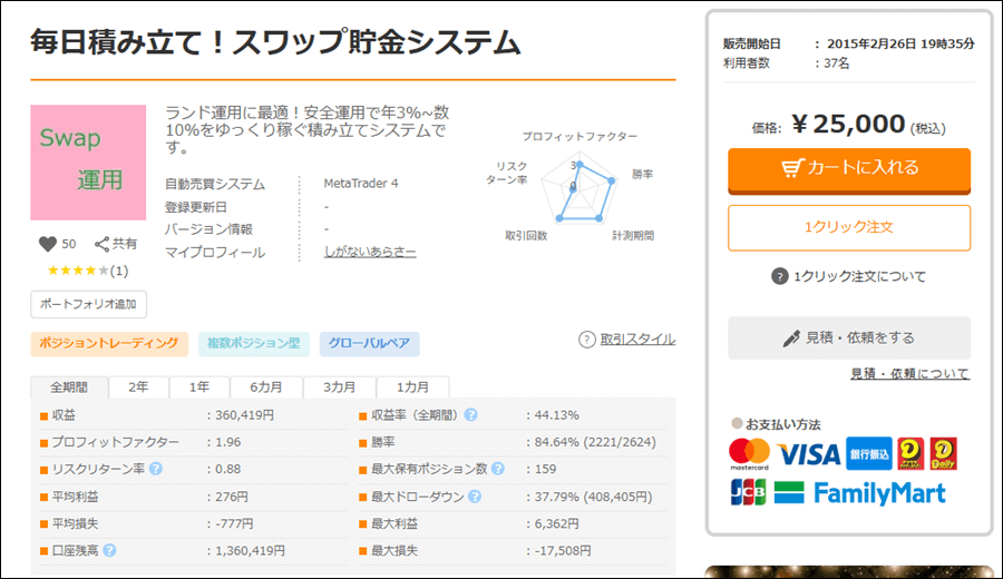 毎日積み立て!スワップ貯金システムは多通貨ペア対応のリピート系のEAですが、成績はどうなのでしょうか。