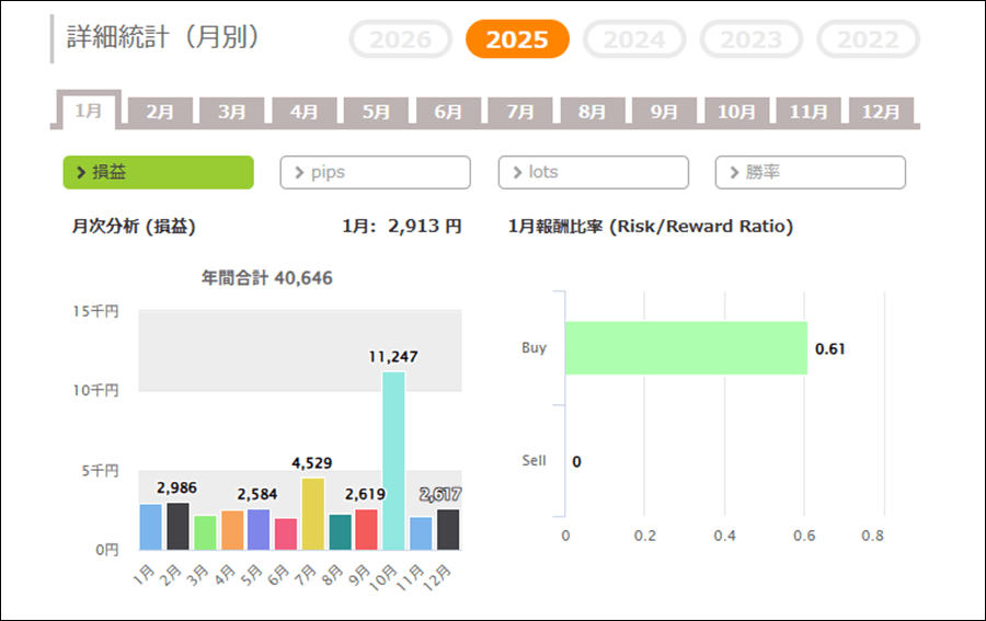月次分析を見ると、リピート系ですので基本プラス成績になっています。