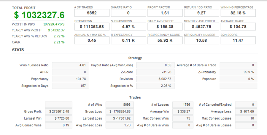 プロフィットファクター 1.96 勝率 84.64% (2221/2624)