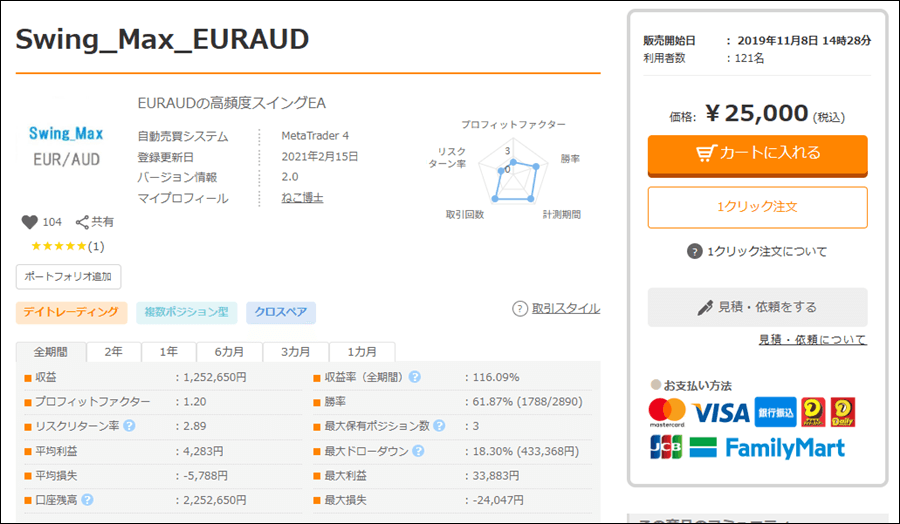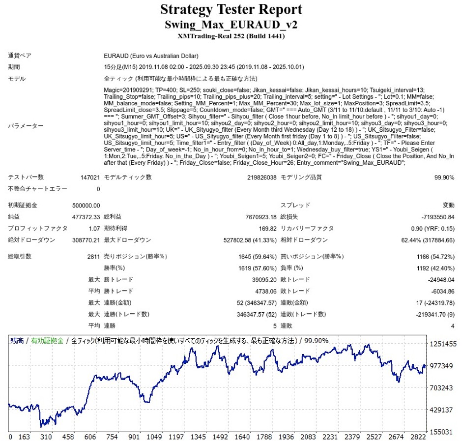 Swing_Max_EURAUDはスイングEAですが、成績はどうなのでしょうか。