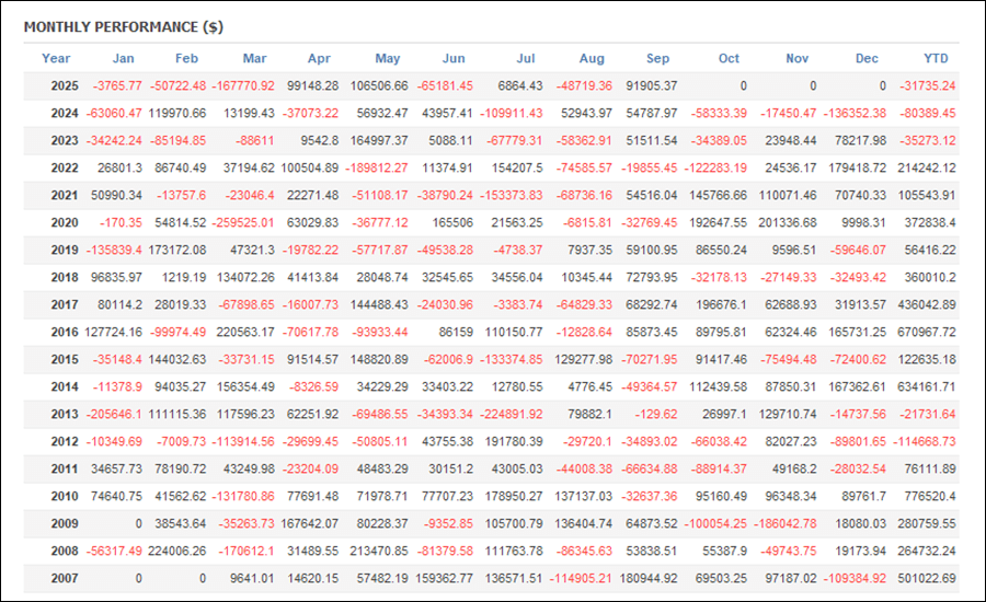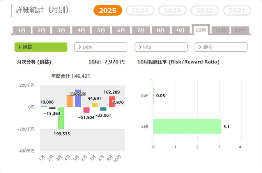 月次分析を見ると、2025年は3月に大きくマイナスですが、今のところトータルでプラスです。