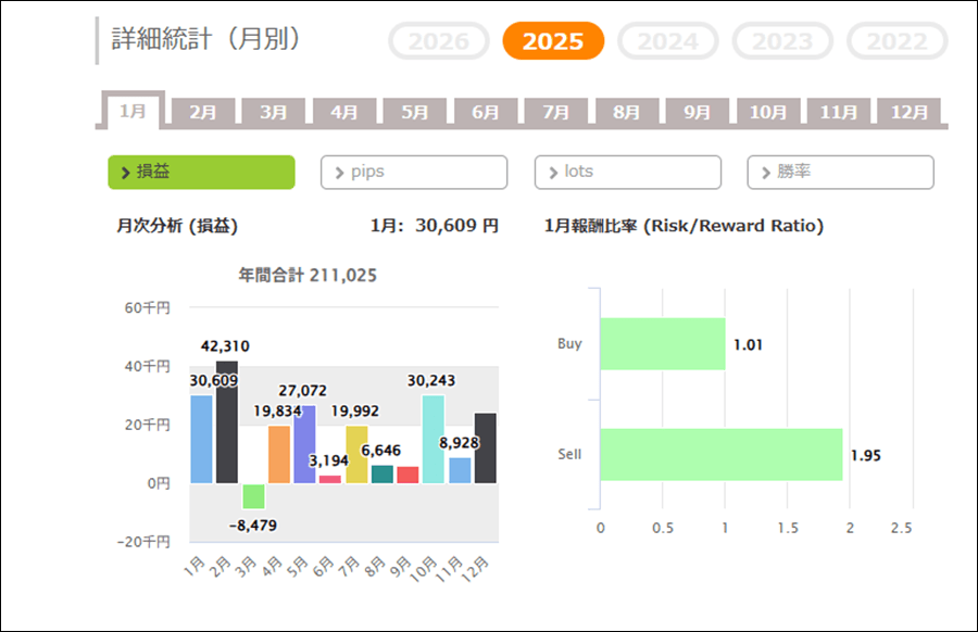 月次分析を見ると、マイナスの月もありますが利益を大きく取っている月があるため全体的にはプラスになっています。