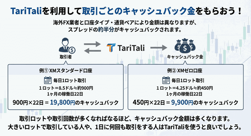 取引回数が多い人はTariTaliを使うことで、かなりの金額を受け取ることが可能です。