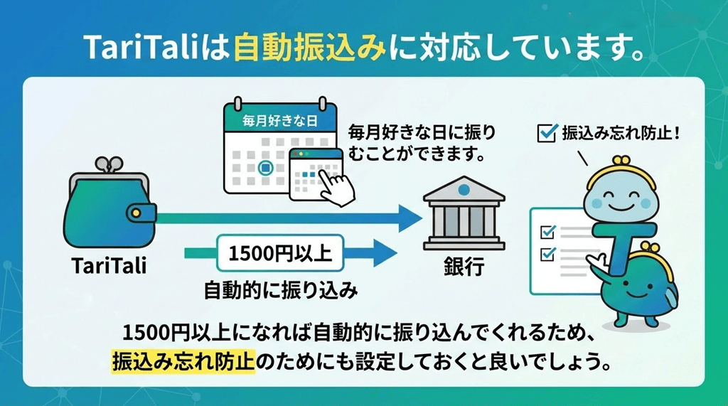 TariTaliは自動振込みに対応していて、毎月好きな日に振り込むことができます。