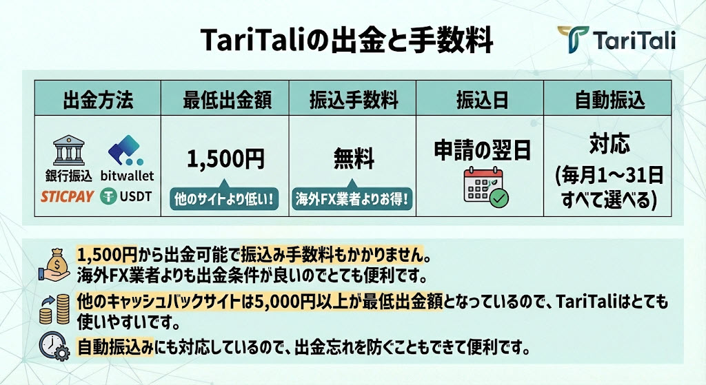 TariTaliの出金と手数料