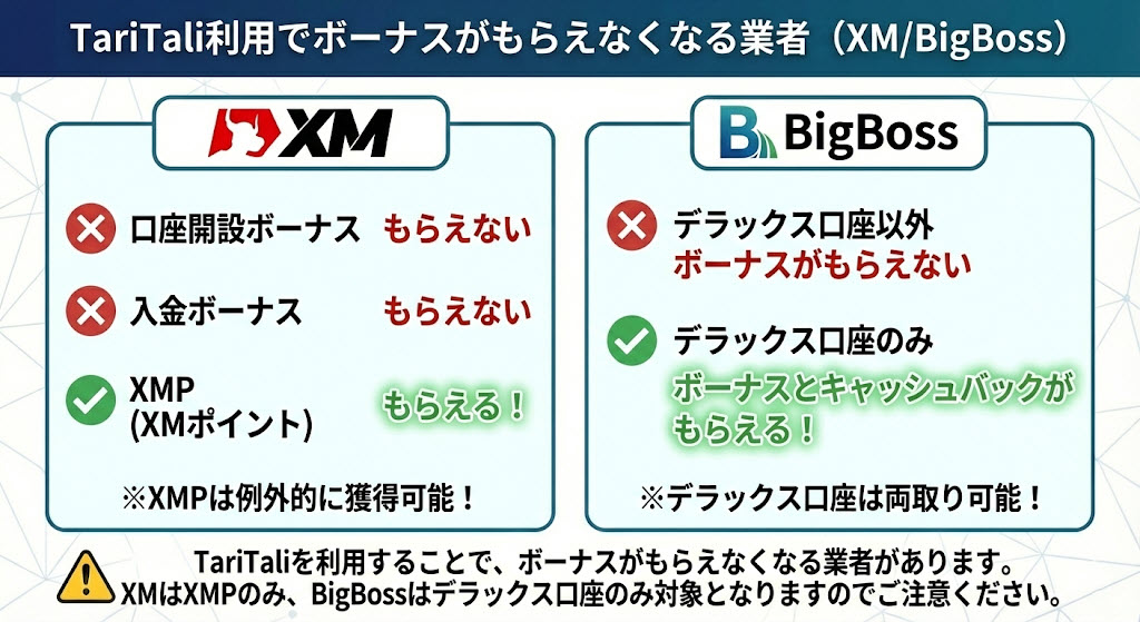 | TariTali利用でボーナスがもらえなくなる業者 | |