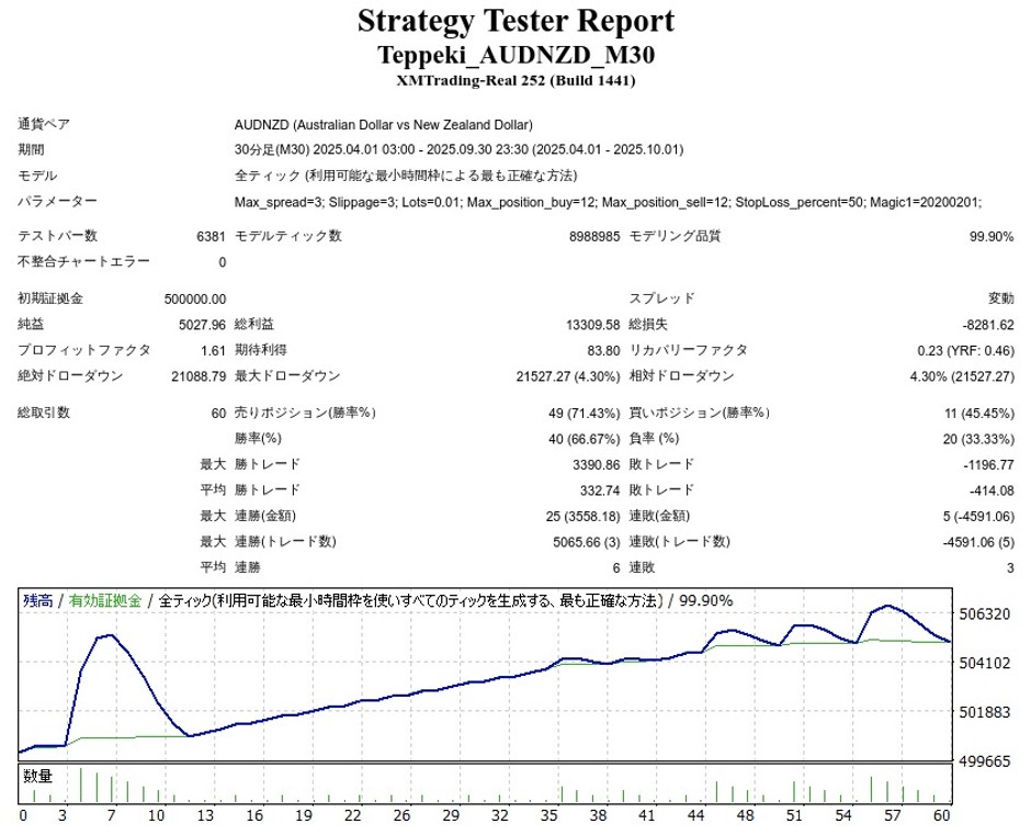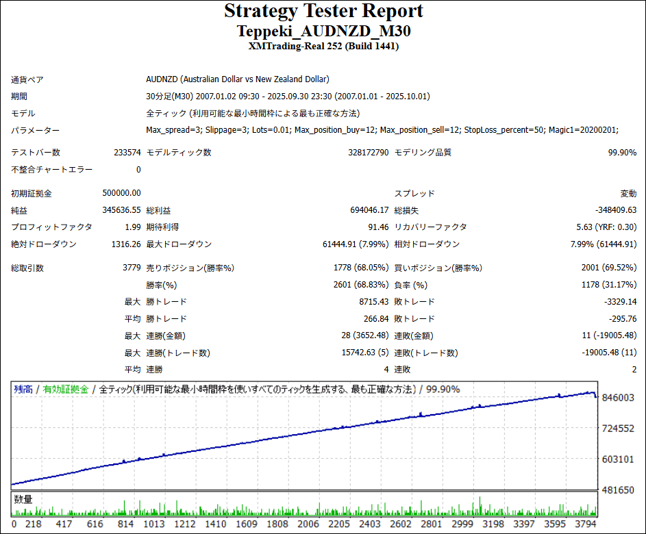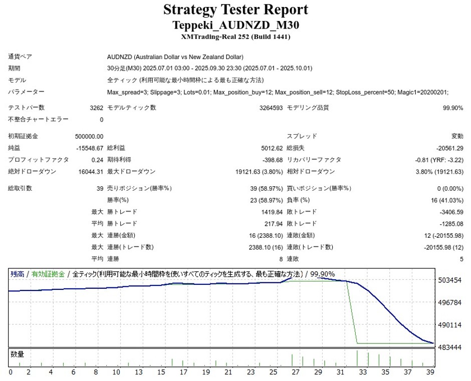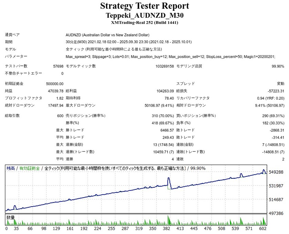 Teppeki AUDNZDのリリース後のバックテスト結果(≒フォワード結果)は以下のようになりました。