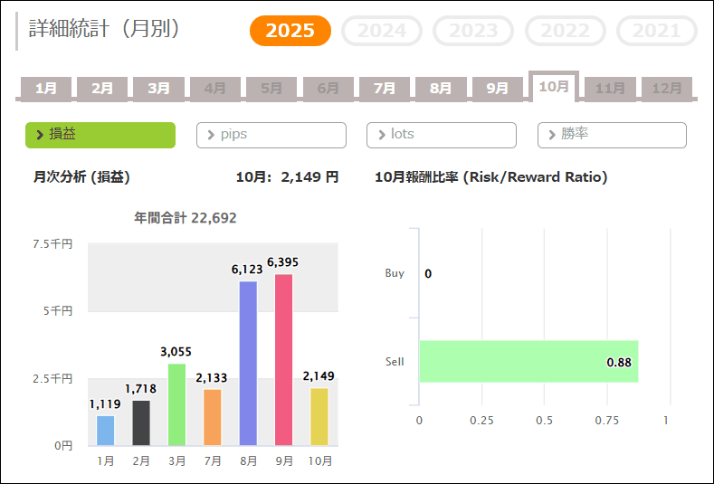 2022年~2025年の月間成績をまとめると合計で+1.2万円の成績となりました。