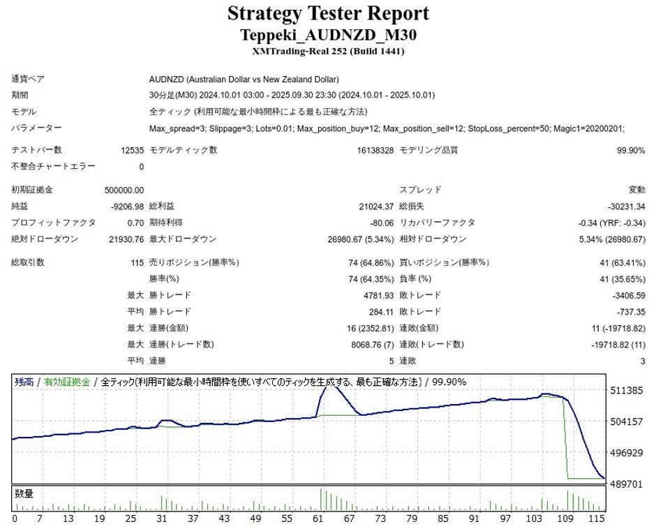 Teppeki AUDNZDはナンピンEAですが、成績はどうなのでしょうか。