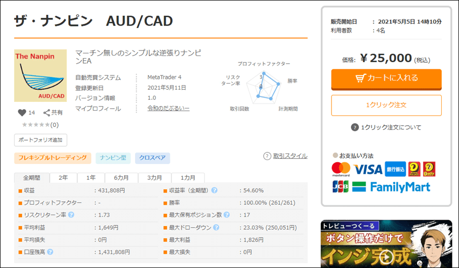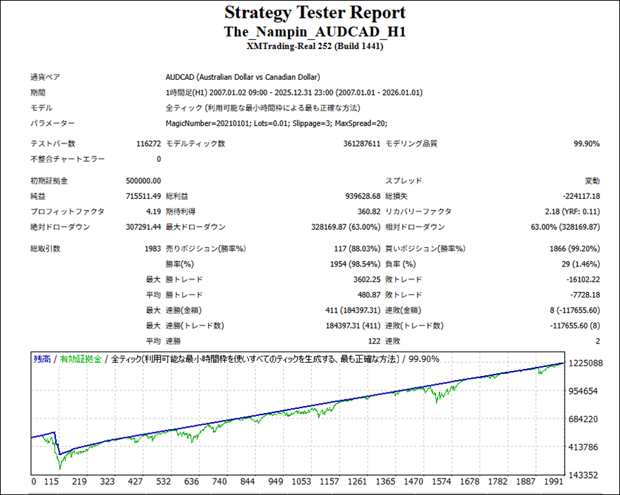 ザ・ナンピン AUD/CADはナンピンEAですが、成績はどうなのでしょうか。