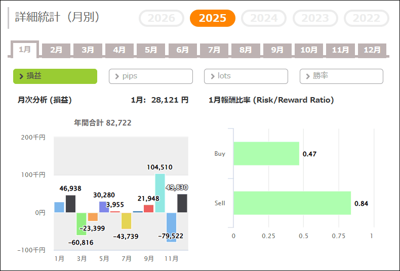 月次分析を見ると、2025年、2024年はトータルでプラスです。