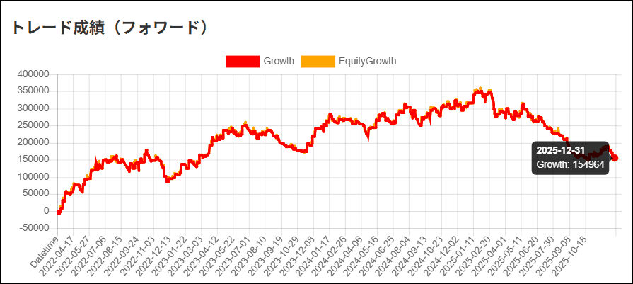 「バックテスト結果とフォワードテスト結果が違いないか」、「過去データに最適化し過ぎていないか」など参考にしてください。