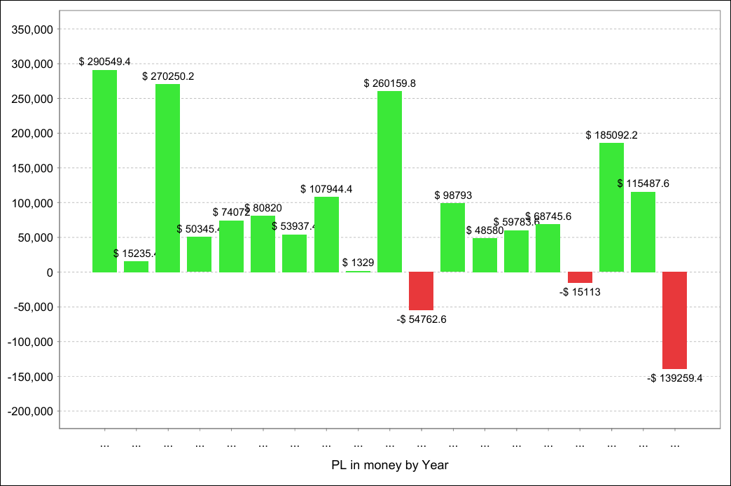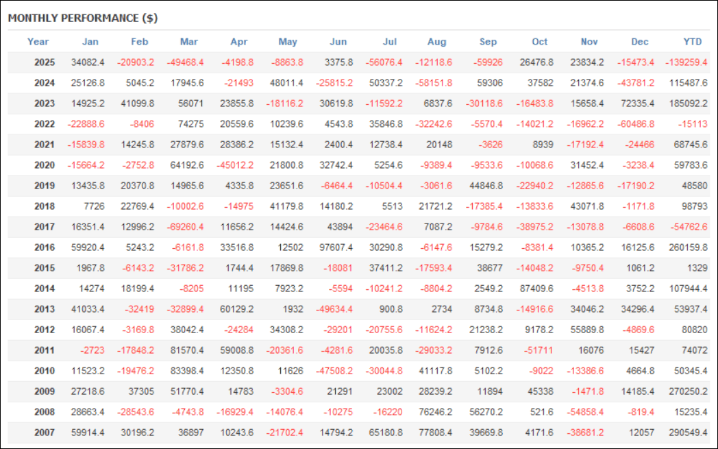 年次の成績を見ると、2017年、2022年、2025年以外はすべてプラスです。