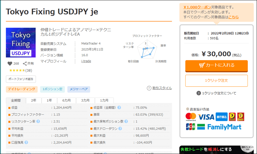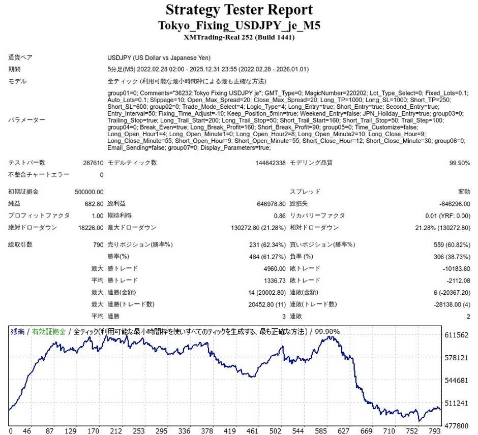 Tokyo Fixing USDJPY jeは仲値トレードEAのようですが、成績はどうなのでしょうか。