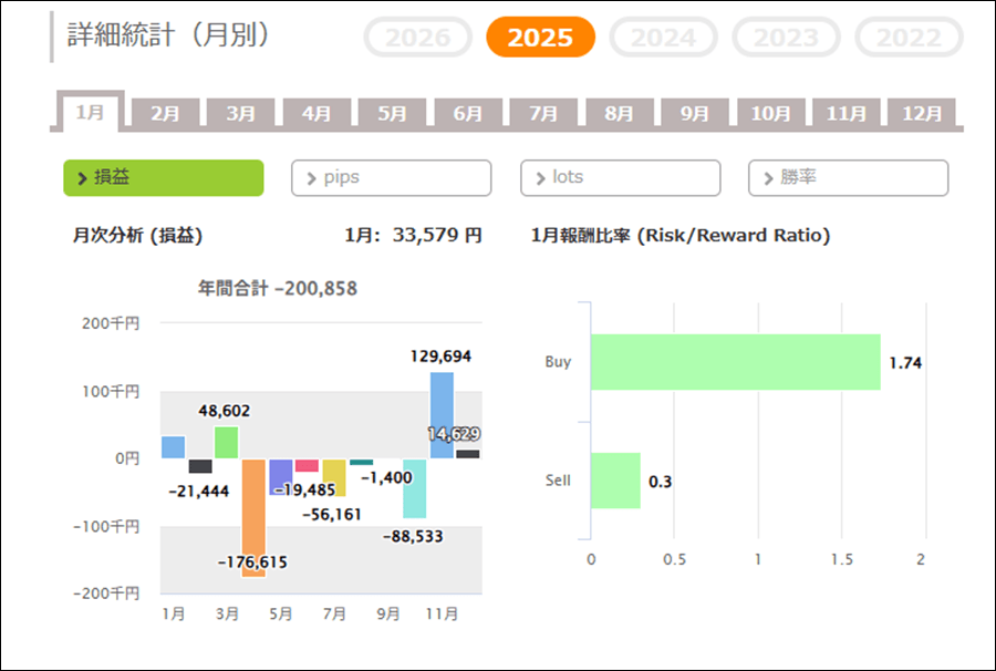 | 平均損失 | -23,263円 | 最大損失 | -104,400円 |