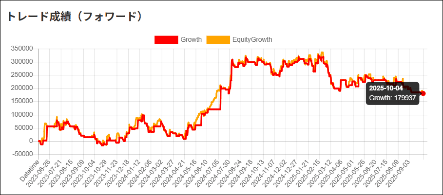 「バックテスト結果とフォワードテスト結果が違いないか」、「過去データに最適化し過ぎていないか」など参考にしてください。