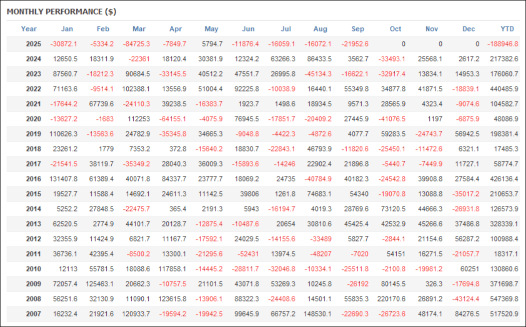 年次の成績を見ると、2025年以外はすべてプラスです。