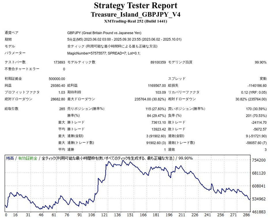 Treasure Island_GBPJPYはGBPJPYのスイングトレードEAですが、成績はどうなのでしょうか。
