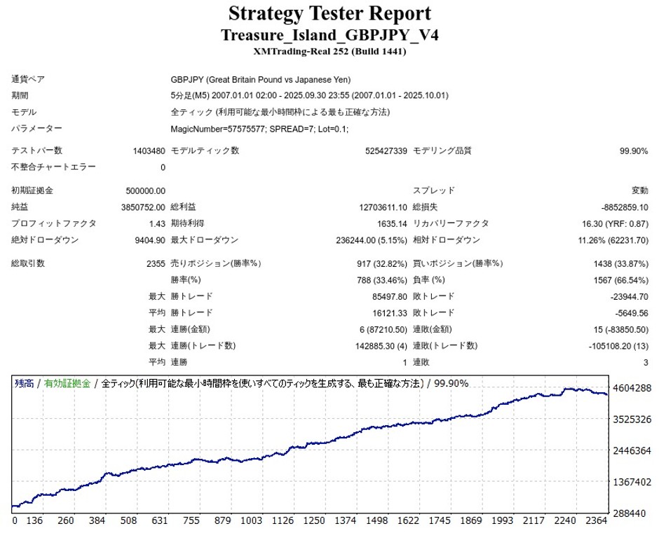 Treasure Island_GBPJPYは過去18年、リリース後ともにプラスでした。