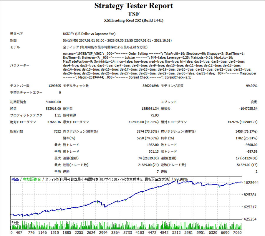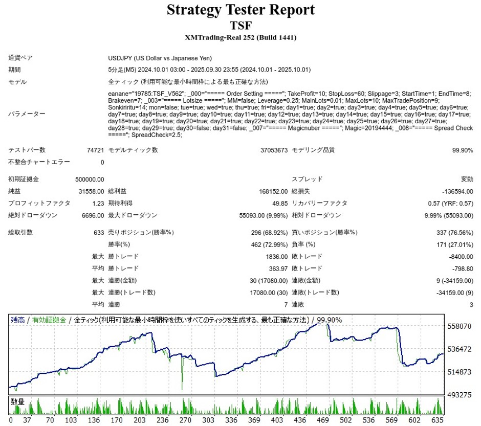 | 初期証拠金 | 500,000円 | 勝率 | 74.66% |