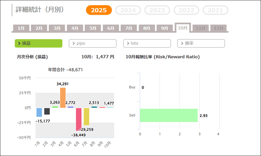 2022年~2025年9月の月間成績をまとめると合計で-6.5万円の成績となりました。