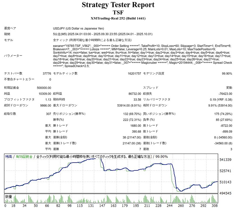 | 初期証拠金 | 500,000円 | 勝率 | 69.91% |