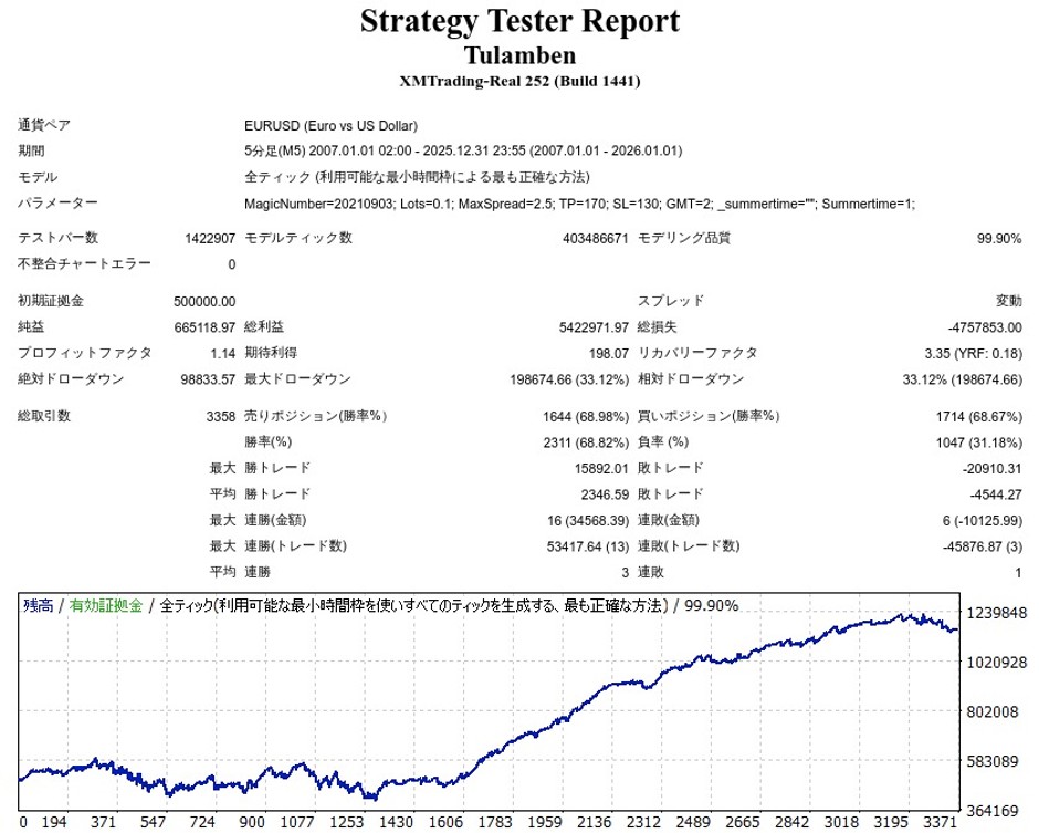 Tulamben_EURUSDはEURUSD専用のデイトレEAですが、成績はどうなのでしょうか。